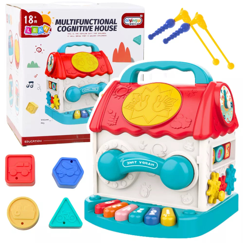Interaktyvus kubas, primenantis žavų namelį, yra unikalus edukacinis žaislas, skirtas vaikams nuo 18 mėnesių amžiaus. Tai tikras veiklos centras, kuris žaidimo metu palaiko mažylio motorinę, pažintinę ir jutiminę raidą. Namelis aprūpintas daugybe interaktyvių funkcijų, kurios įtraukia vaiką įvairiais lygmenimis – nuo formų rūšiavimo iki kirminų gaudymo magnetiniu geniu.