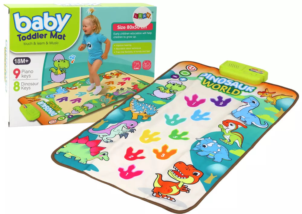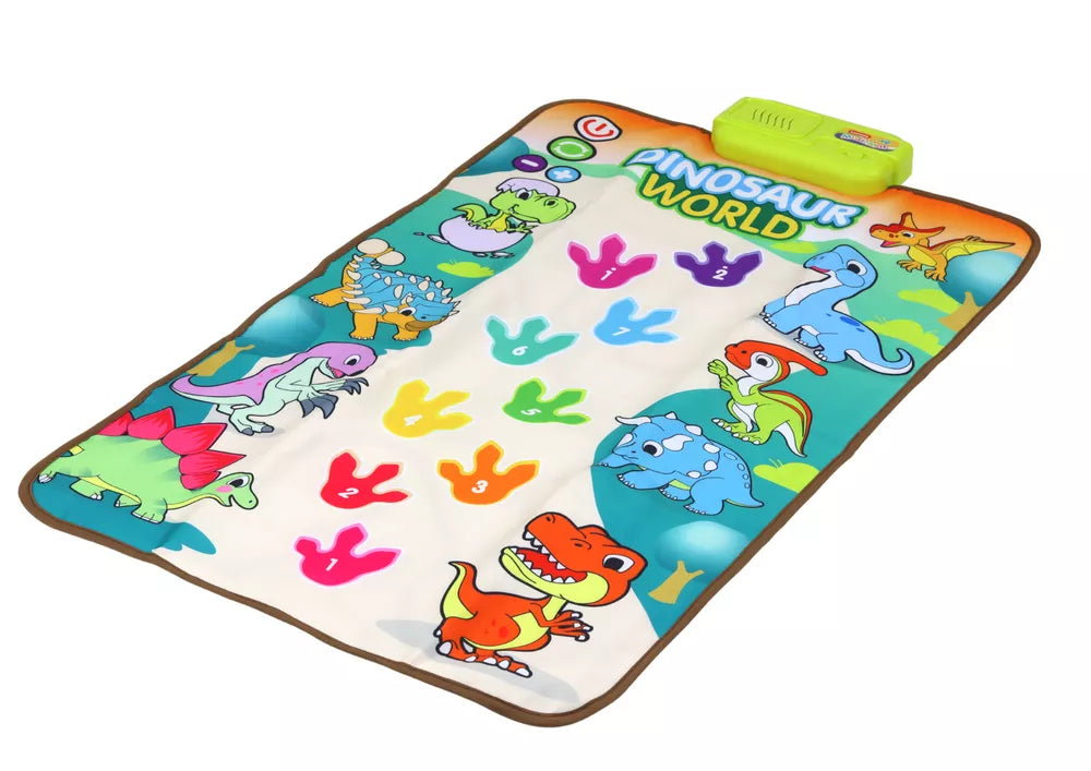 Interaktyvus edukacinis dinozaurų muzikos šokių kilimėlis yra prietaisas, kuris ne tik skatina vaikus šokti, bet ir lavina jų kūrybiškumą bei aktyvumą. Papuoštas nuostabiais spalvingais dinozaurų paveikslėliais, jis yra ne tik puikus žaislas, bet ir graži dekoracija vaiko kambaryje. Specialūs jutikliai reaguoja į vaiko judesius, o tai leidžia jam visapusiškai interaktyviai dalyvauti žaidime. Kilimėlis turi įmontuotus garso efektus ir melodijas, kurios suteikia atmosferos šokant ir žaidžiant.