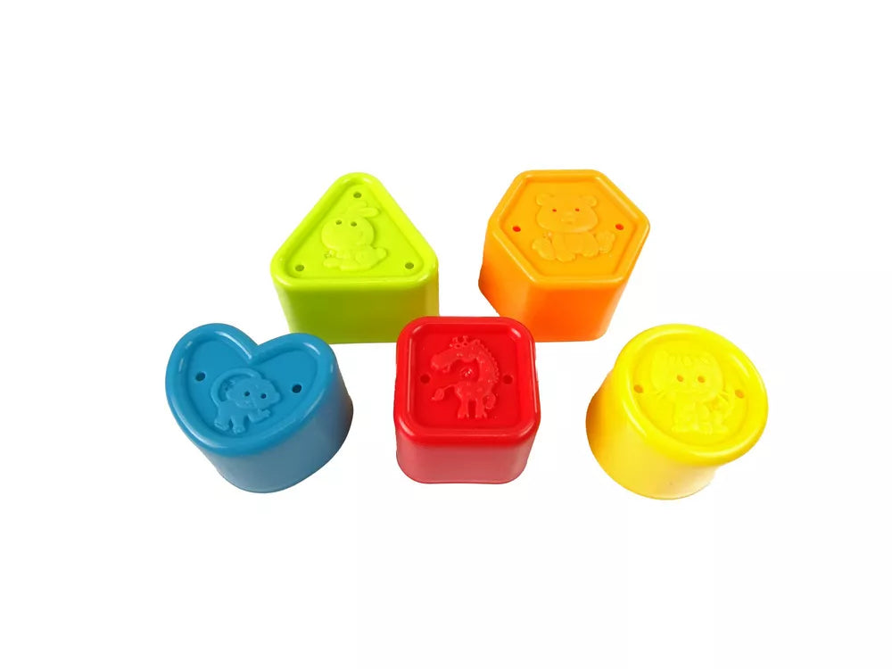 Su žaislu galima žaisti įvairiais būdais. Kibiro pagrindas turi rūšiuoklį ant dangtelio su skirtingų formų skylėmis, skirtomis įdėti kaladėles su gyvūnais. Mažylis išmoks ne tik formas, bet ir gyvūnus. Antrasis variantas – pastatyti aukštą bokštą, kurio viršuje – linksmo meškiuko galva! Tinkamai sukraukite puodelius vieną ant kito, kad sukurtumėte aukštą pilį.