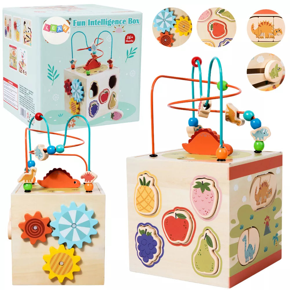 Montessori edukacinis medinis kubas su karoliukų labirintu – fantastiškas edukacinis žaislas, apjungiantis žaidimą ir mokymąsi. Šis kubas su penkiais paviršiais įtraukia vaikus į įvairias veiklas, kurios skatina kūrybiškumą, rankų ir akių koordinaciją bei motorinių įgūdžių vystymąsi.