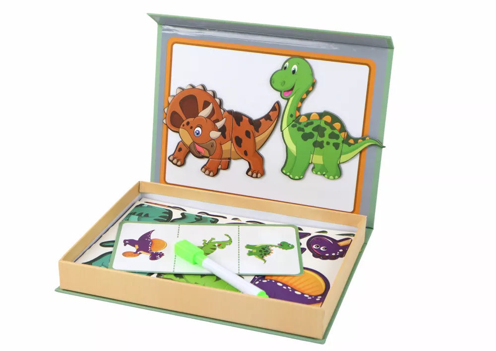 Šis magnetinių dėlionių rinkinys yra ne tik linksmybės, bet ir mokymasis bei kūrybiškumo ugdymas. Vaikai gali atrasti žavų dinozaurų pasaulį, kurti savo istorijas ir išreikšti save tiek dėlionių forma, tiek ant piešimo lentos. Tai pasiūlymas tiems, kurie nori sujungti pramogas su mokymusi ir meninių talentų ugdymu.