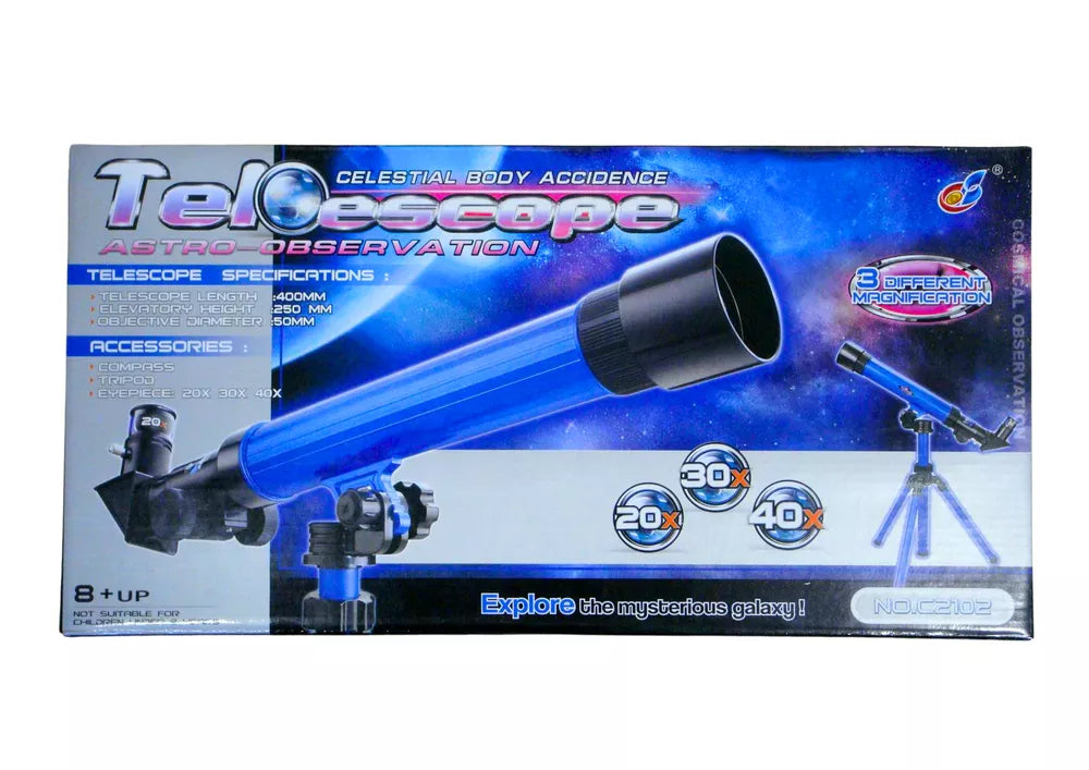 Edukacinis teleskopas su trikoju, didinimas 20x 30x 40x, mėlynas
