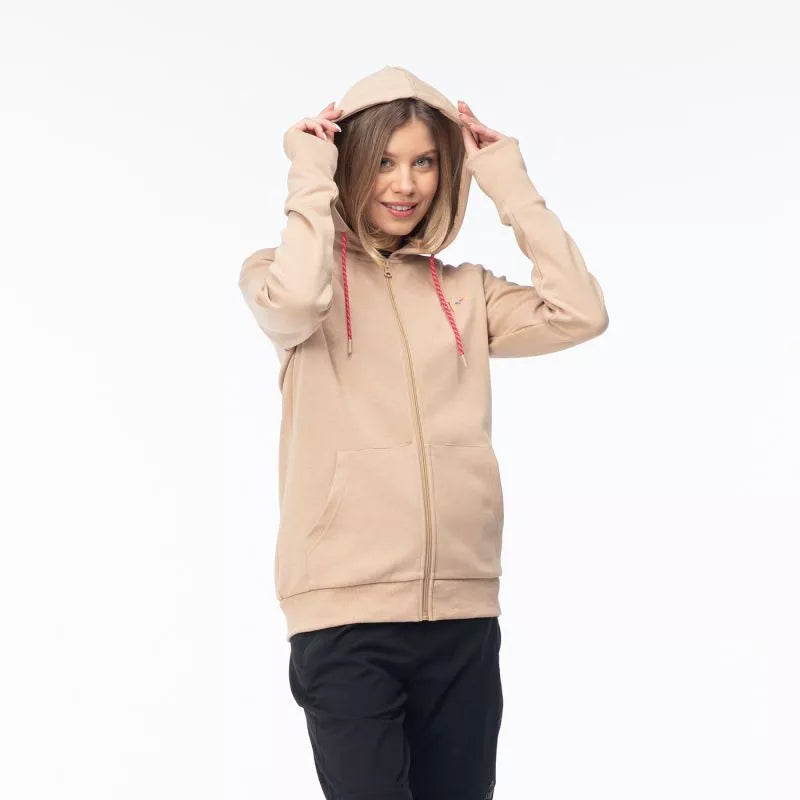 Ypatybės: Moteriškas Elbrus džemperis. Užsegamas užtrauktuku. Šoninės kišenės. Rankogaliai ir džemperio apačia su briaunuotu apvadu. Sudėtis: poliesteris, medvilnė Spalva: smėlio... Skaityti daugiau