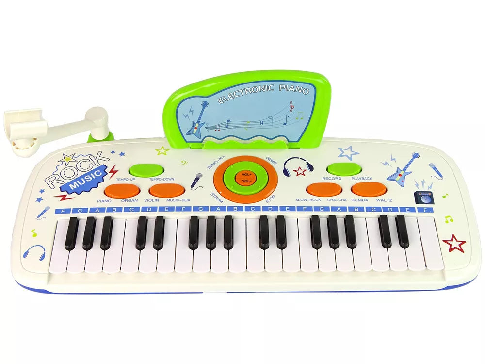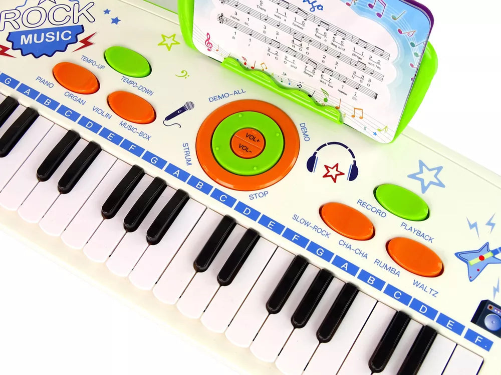 Visas instrumentas yra turtingai aprūpintas ir siūlo puikias galimybes. Instrumentas turi tempo reguliavimo funkciją, įvairias ritmo funkcijas, kurios leis jums kurti savo melodijas. Pridedamos natos padės žengti pirmuosius žingsnius jūsų muzikiniame nuotykyje. Instrumento gale yra MP3 ir USB jungtys, todėl galite prijungti išorinius laikmenas.