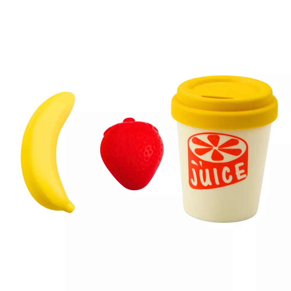 Papildomas privalumas yra galimybė atsukti plaktuvo ąsotį nuo pagrindo, o tai padidina realizmą ir paįvairina linksmybes, suteikdamas vaikui daugiau kontrolės „ruošiant“ gėrimą. Į rinkinį taip pat įeina spalvingi plastikiniai vaisiai: braškė, bananas ir žalia citrina, taip pat kokteilio taurė, į kurią galima „įpilti“ paruoštą gėrimą. Visi elementai yra saugūs ir puikiai pritaikyti vaiko rankoms.