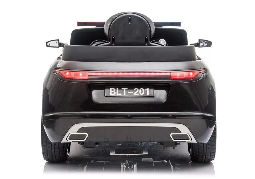Juodas akumuliatorinis automobilis aprūpintas muzikos moduliu – jo konstrukcijoje yra MP3 grotuvas ir SD kortelės įvestis, taip pat USB prievadas, kuris leidžia groti mėgstamas mažojo vairuotojo ir jo tėvų dainas linksminantis. BLT-201 taip pat pasižymi daugybe saugių ir patogių patogumų. Kalbame apie penkių taškų saugos diržus, vidinį durų užraktą nuo atsitiktinio atidarymo, taip pat intuityvų šviesų jungiklį ir transporto priemonės pavarą – šis sprendimas pašalina jauno vairuotojo pamestų uždegimo raktelių problemą. BLT-201 juodo automobilio dizaine dėmesį atkreipia aukšti, tamsinti langai aplink vairuotoją, esantys galinėje šviesos dalyje, sujungti su LED juostele, einančia per visą transporto priemonės plotį, taip pat dvi stačiakampės oro išleidimo angos, suteikiančios modeliui sportinį charakterį ir sidabro-pilkos spalvos detales.