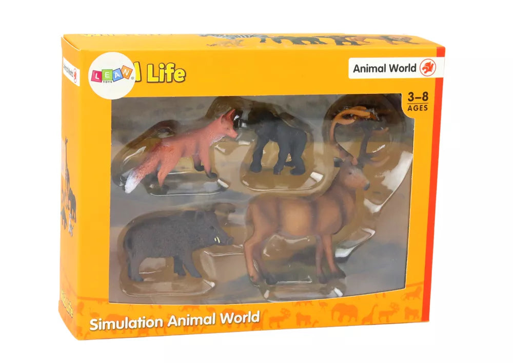Figūrėlių rinkinys: miško gyvūnai, elnias, šernas, lapė, gorila