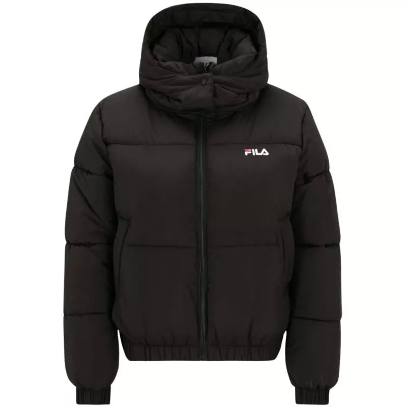 Ši moteriška Fila striukė puikiai tinka žiemai. Išorinis audinys yra atsparus vandeniui, todėl riboja drėgmės įgeriamumą. Ji yra standartinio kirpimo, su elastine raištelių apačia ir dygsniuota konstrukcija su tolygiai paskirstytu sintetiniu pūkų užpildu. Su nuimamu gobtuvu, kuris tvirtinamas spaudėmis. Elastingi rankogaliai. Ilgas užtrauktukas integruotas su vidine atramine juosta. Šoninės kišenės su užtrauktukais.
