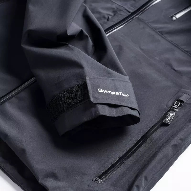 Moteriška FTN PRO JACKET W SYMPATEX® trekingo striukė pasižymi neakytu (hidrofiliniu) poliuretano pagrindu, kuris sugeria drėgmę iš kūno ir išgarina ją į išorę. Sympatex® yra plona, neperšlampama membrana, pasižyminti puikiu pralaidumu orui. DWR danga, padengta ant striukės audinio, padidina atsparumą vandeniui. Laminuoti užtrauktukai ir klijuotos siūlės dar labiau padidina audinio neperšlampamumą. Tiesus kirpimas leidžia laisvai judėti žygiuojant. Integruotas, reguliuojamas gobtuvas ir raišteliu suveržiama juosmens dalis leidžia pritaikyti striukę pagal individualius poreikius. Šiame modelyje yra vidinė kišenė ir papildoma kišenė ant krūtinės. Dvikryptis užtrauktukas, reguliuojami rankogaliai ir atšvaitinės detalės yra kiti šio gaminio privalumai.