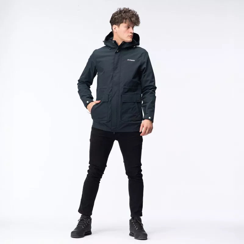 Vyriška Fitanu VERLO striukė yra universali, praktiška pereinamojo sezono striukė. Ją sudaro ActivGuard Pro® membrana, kurios vandeniui atsparumo rodiklis siekia 10 000 mm H2O, o pralaidumas orui – 10 000 g/m²/24h. DWR danga ant išorinio audinio padidina jos atsparumą vandeniui. Užklijuotos siūlės neleidžia drėgmei prasiskverbti per siūles. VERLO striukė turi integruotą, reguliuojamą gobtuvą. Raišteliu reguliuojamas juosmuo ir rankogaliai leidžia pritaikyti striukę pagal individualius poreikius. Dvikryptis YKK® užtrauktukas leidžia patogiai įlipti į automobilį neišsirengus striukės. Šiame modelyje yra vidinė kišenė, vadinamoji „sausa kišenė“, skirta telefonui ar piniginei laikyti, ir išorinės kišenės.