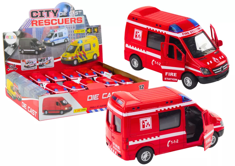 Gaisrinė mašina 1:32 Atidaromos durys Šviesos Garsai Važiuoja Raudona