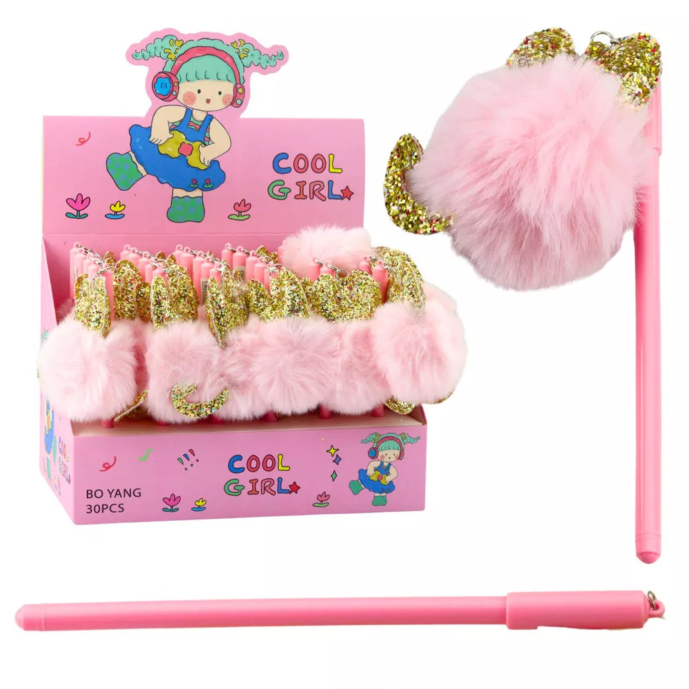 Gelinio rašalo rašiklis su pūku – rožinis su ausimis