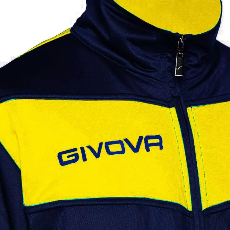 Givova Tuta Visa Sportinis Kostiumas Tamsiai Mėlynas ir Geltonas TR018 0407 Savybės: Treniruočių sportinis kostiumas, pagamintas iš poliesterio. Palaidinė užsegama... Skaityti daugiau