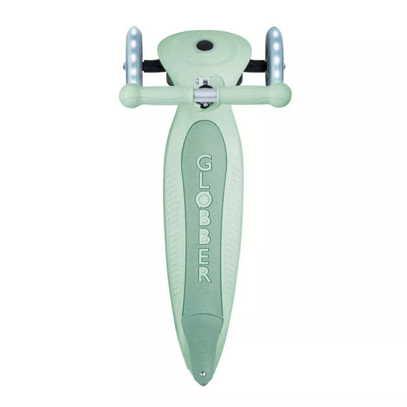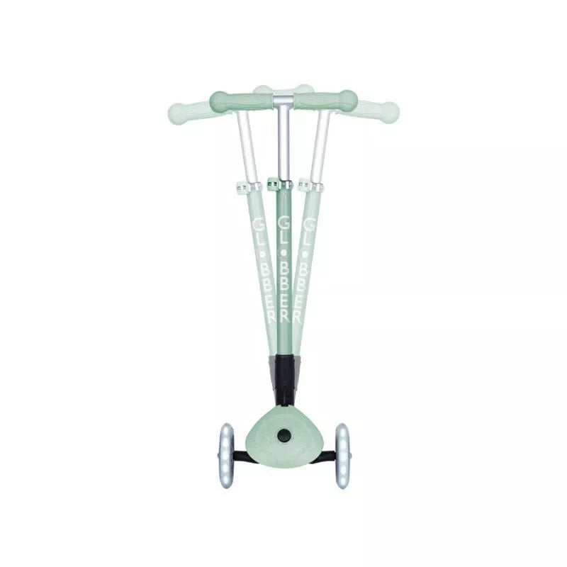 - Šiame 3 ratų paspirtuke yra „Globber“ patentuota sulankstymo sistema su saugos mygtuku, kuri sulanksto paspirtuką į vežimėlio režimą. Lengvai nešiokite, paridenkite arba paslėpkite jį po žaidimo!