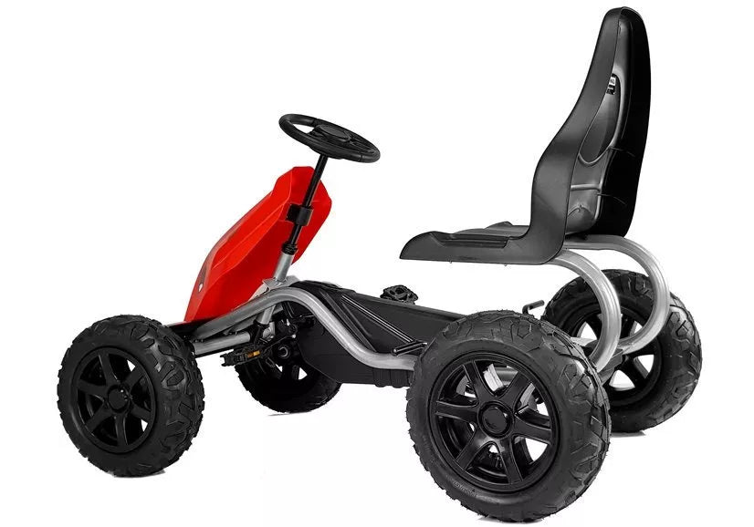 Transporto priemonė turi plačius pripučiamus ratus. Gokarto išdėstymas ant minkštų ratų leidžia vairuotojui važiuoti savo dvirate transporto priemone įvairiais paviršiais. Važiavimo komfortą užtikrina juoda, plati sėdynė su atlošu, taip pat ergonomiškos formos vairas.