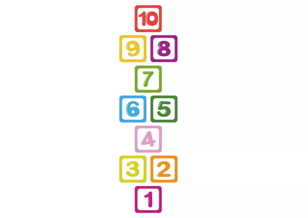 Grindų lipdukai skaičiai 1–10, skirti mokyti šokinėti ant vienos kojos