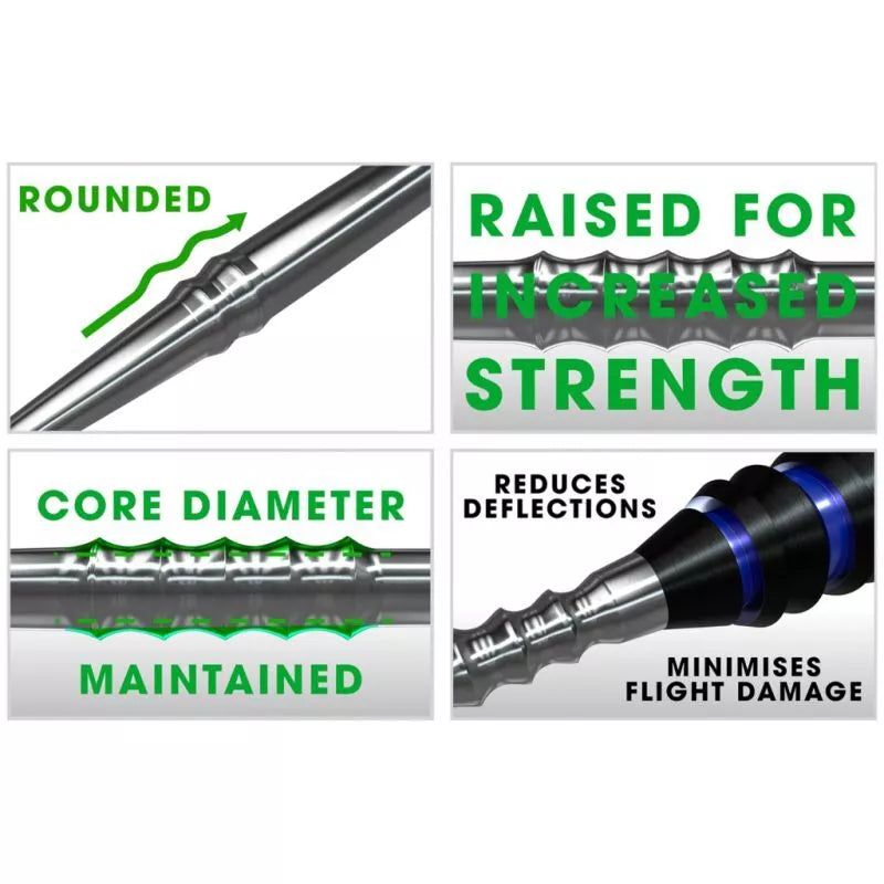 • Minimalizuoja strėlyčių lentos pažeidimus – lygus, preciziškas paviršius sumažina strėlyčių lentos dėvėjimąsi ir pagerina strėlyčių sukibimą