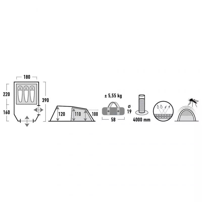 HIGH PEAK ATMOS 3 PALAPinė 11535 Savybės: Erdvi trijų asmenų palapinė su dviem įėjimais. Erdvi prieangis su dugnu gali būti... Skaityti daugiau