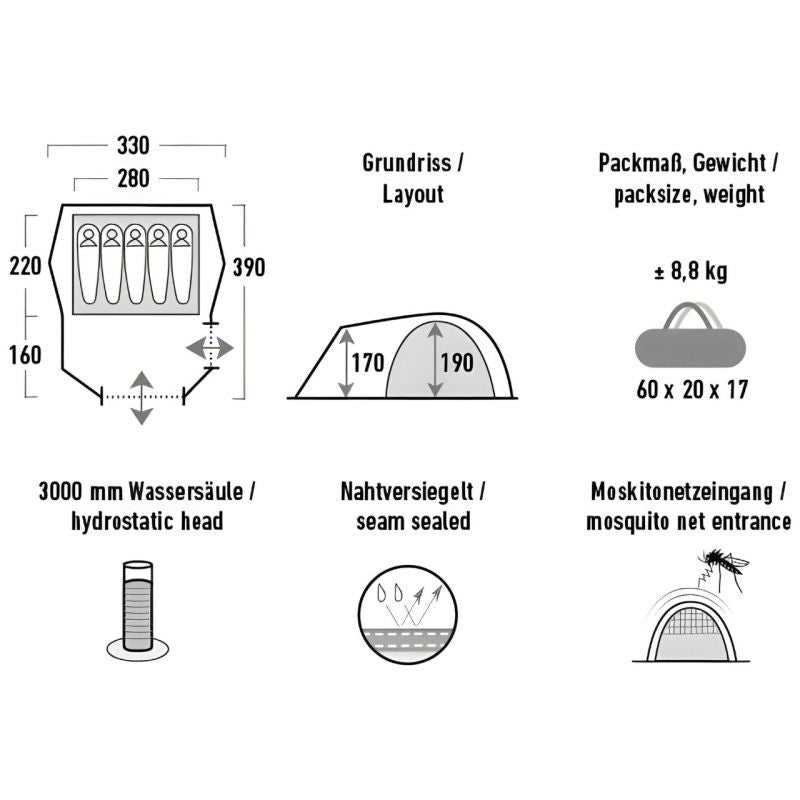 Aukščiausias viršukalnės palapinė Tessin 5.1 Žalia 10381