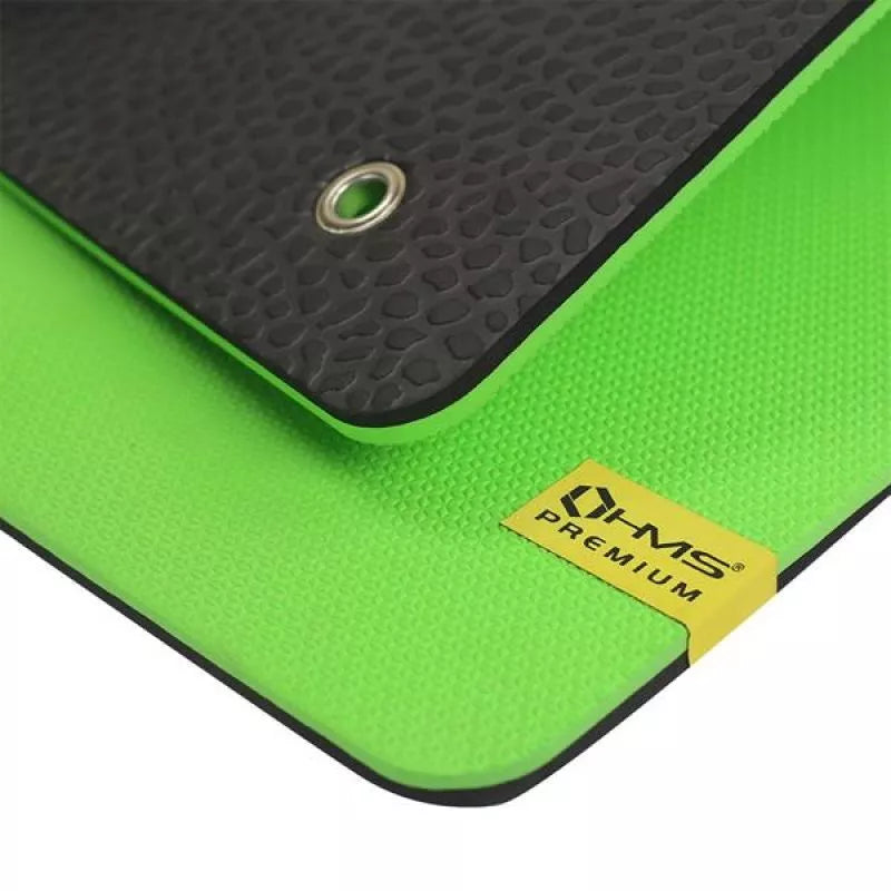 HMS Premium MFK01 žaliamai-juodas klubo fitneso kilimėlis su skylutėmis