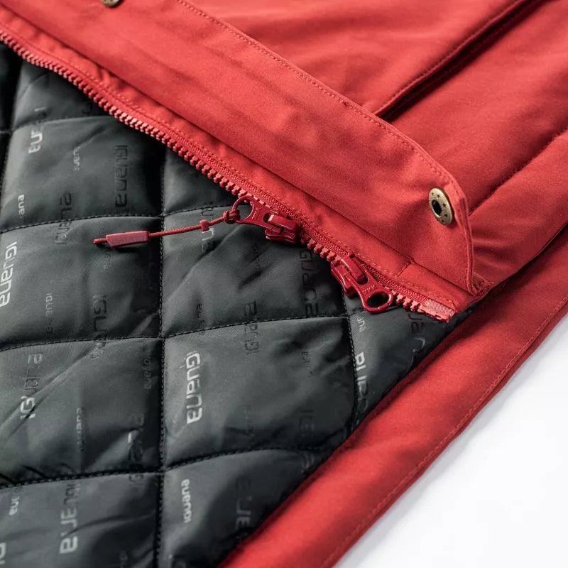Vyriška žiemos striukė NERMIN iš Iguana pasižymi 10 000 mm H²O vandens nepralaidumo ir 5 000 g H²O/m²/24h pralaidumo orui membrana. DWR danga papildomai apsaugo audinį nuo vandens įsiskverbimo. Klijuotos siūlės sandarina siūles nuo drėgmės. Daugybė kišenių leidžia nešiotis būtiniausius daiktus, pavyzdžiui, piniginę ar telefoną. Vidinis raištelis ties juosmeniu leidžia papildomai reguliuoti ir pritaikyti striukę pagal poreikį. Nuimamas, reguliuojamas gobtuvas apsaugo nuo sniego ir vėjo. Prailginta apykaklė su dvipusiu užtrauktuku puikiai tinka pasivaikščiojimams.