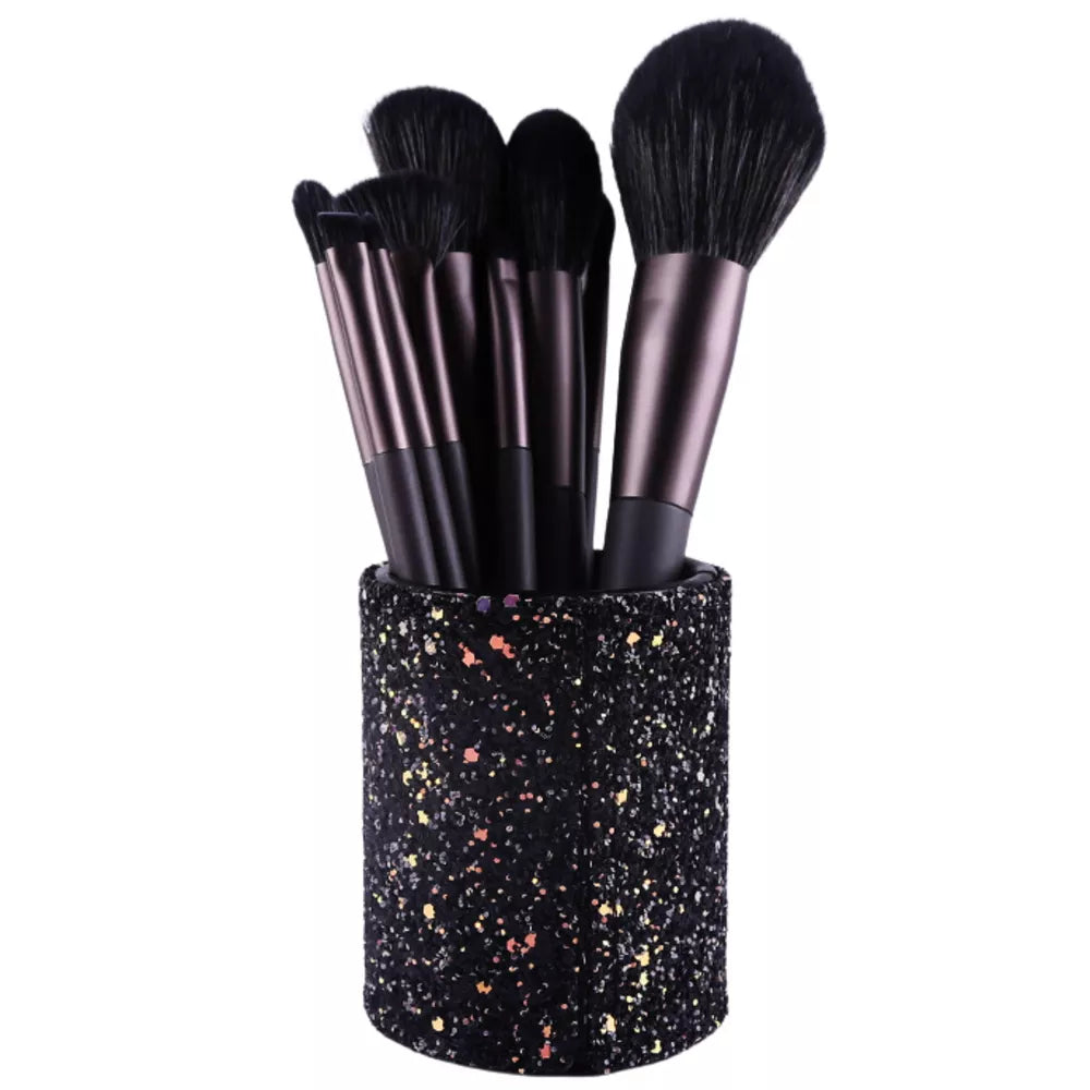 Pagaminta iš patvarios medžiagos ir padengta blizgančiais blizgučiais, ji traukia dėmesį ir suteikia elegancijos. Tai puikus sprendimas visiems, kurie vertina funkcionalumą ir dizainą viename. Talpykloje tilps ne tik makiažo šepetėliai, bet ir akių kontūro pieštukai, tušai, akių pieštukai ar kiti smulkūs kosmetikos priedai.