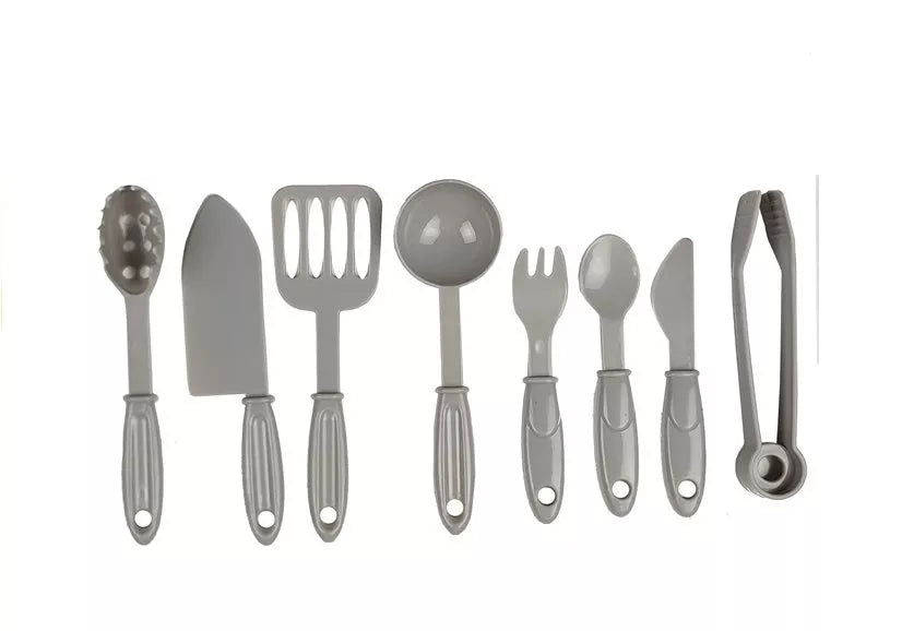 Rinkinį sudaro 58 elementai – puodai, keptuvės, stalo įrankiai, lėkštės, daržovės, maisto produktai ir lipdukai, kuriais vaikai gali patys pasipuošti virtuvėlę. Tai daro žaidimą ne tik patrauklų, bet ir lavinantį.