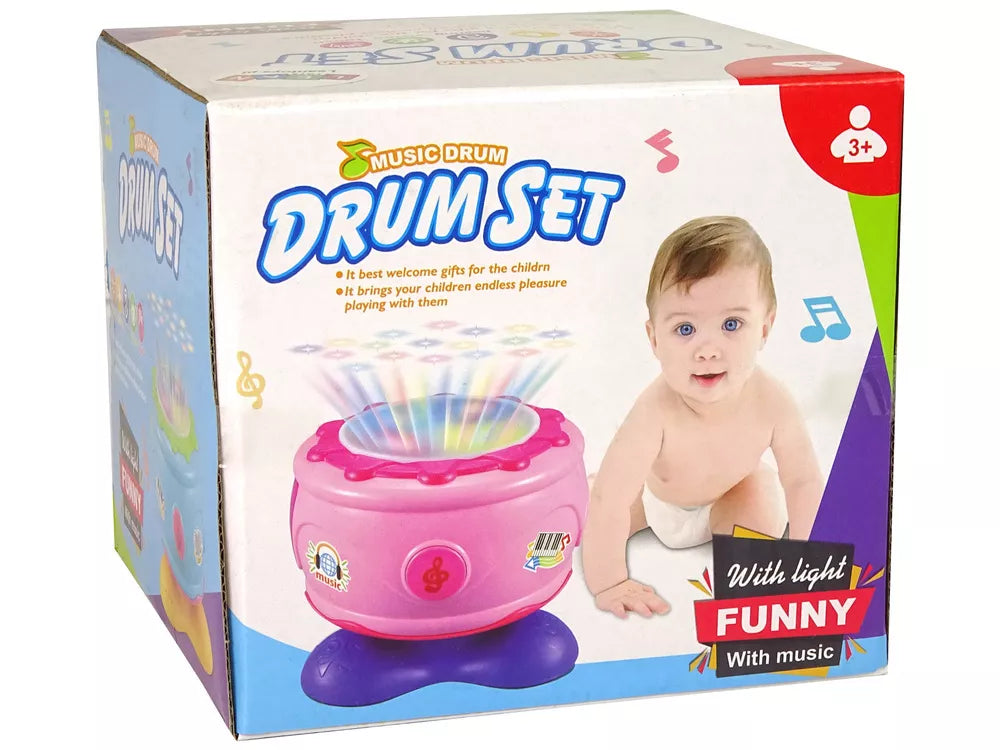 Šis muzikinis būgnas turi garsumo reguliatorių, todėl juo džiaugsis tiek vaikas, tiek tėveliai. Žaislas turi įrašytas malonias ausiai melodijas ir mirksinčias švieseles. Kiekvieną kartą, kai vaikas muša būgną, jis girdės linksmas melodijas su būgnų ritmu ir mirksinčias spalvotas švieseles. Būgnas sukasi 360 laipsnių kampu, o besisukant žaislui girdėti džiugią vaiko juoką. Be to, būgno šonuose yra du funkciniai mygtukai, kurie leidžia paleisti papildomas skirtingas melodijas ir šviesos efektus. Žaislas yra labai kruopščiai ir preciziškai pagamintas, ir pradžiugins kiekvieną mažylį. Vaikų vystymąsi, ypač motorinius įgūdžius, labai skatina aplinka. Štai kodėl taip svarbu, kad žaislai, su kuriais vaikas žaidžia, skatintų smulkiosios motorikos įgūdžius, mokytų naujų judesių ir įgūdžių.