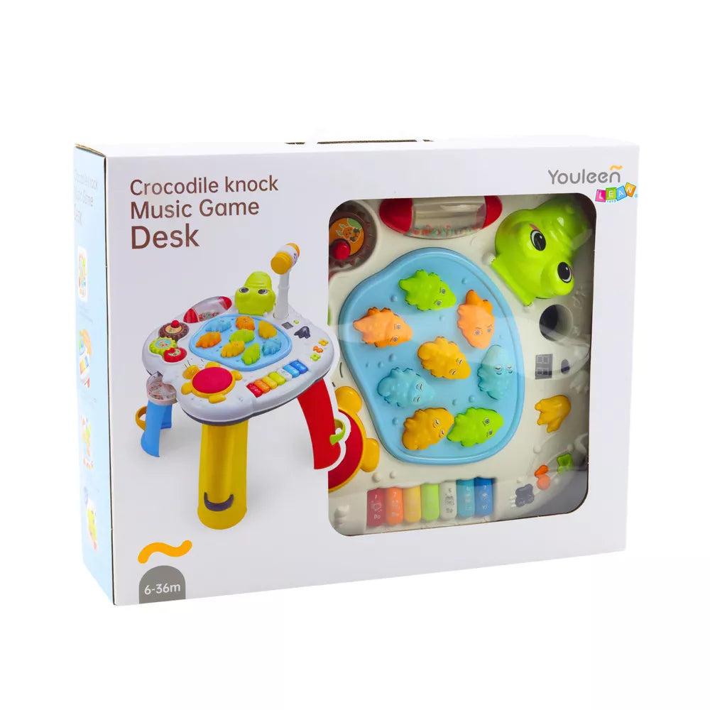 Žaislas siūlo septynis pianino klavišus, kurie leidžia groti paprastas melodijas, taip pat skleidžia gyvūnų garsus, skatinančius vaiko smalsumą ir lavinančius jo klausos suvokimą. Pagrindinis stalo elementas yra įgūdžių žaidimas su plaktuku, kuriame vaikas daužo spalvingas figūras, aktyvuodamas garso ir šviesos efektus. Dėl šios funkcijos mažylis gerina rankų ir akių koordinaciją bei mokosi judesių tikslumo.