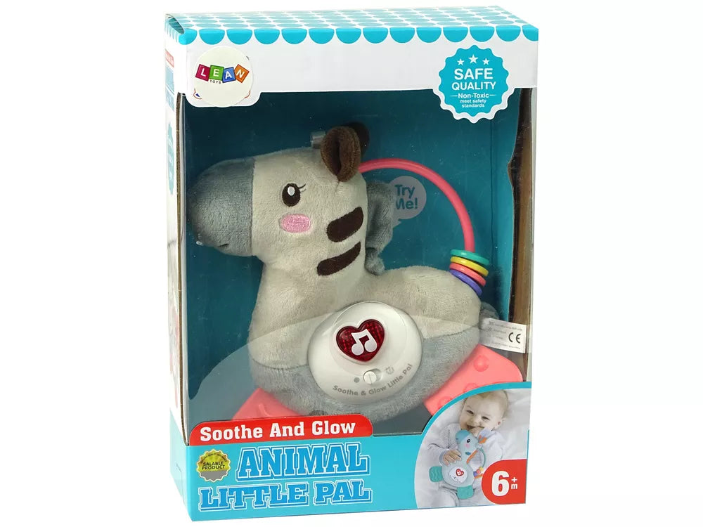 Be to, švytinti širdelė, kuri aktyvuoja melodijas, patraukia vaiko dėmesį ir skatina sąveiką. Minkšti kramtukai, esantys ant zebro kojų, atneša palengvėjimą dygstant dantims, o keturi spalvingi žiedai ant nugaros, veikiantys kaip barškutis, lavina gebėjimą suimti ir manipuliuoti objektais.
