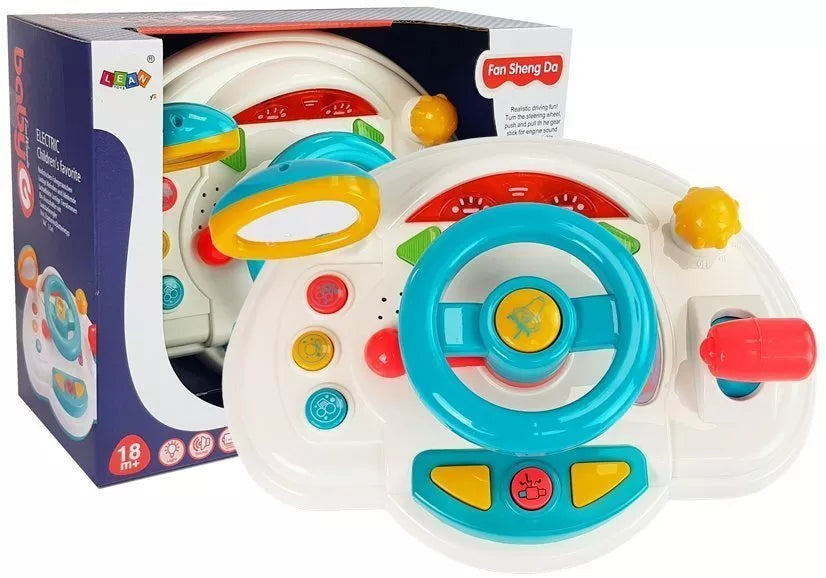 Visi mažyliai mėgsta žaislus, kurie yra labai spalvingi ir sudaryti iš daugybės skirtingų formų. Mūsų vaikiškas vairas yra būtinas kiekvieno tėvelio aksesuaras! Tai smagus ir įdomus žaislas, padedantis lavinti vaiko intelektą, judesius ir kalbą. Išskirtinė trimačio vairo forma padės vaikui išmokti vairuoti. Jis taip pat skleidžia įvairius garsus, melodijas ir taria žodžius anglų kalba!