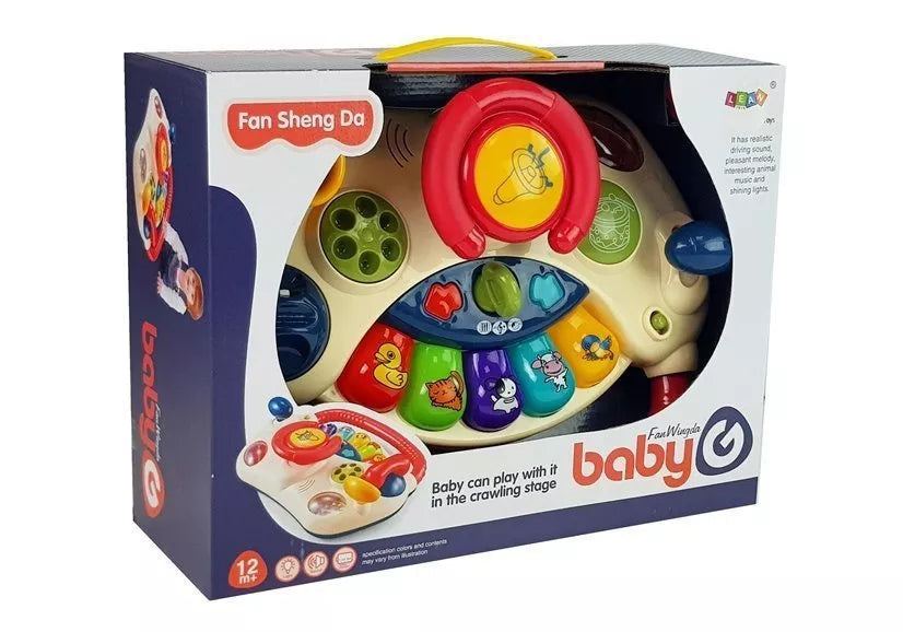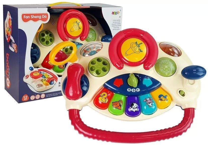 Be to, dešinėje žaislo pusėje yra pavarų perjungimo svirtis, o kairėje – reguliuojamas veidrodėlis. Vairo dydis puikiai pritaikytas kūdikio mažoms rankutėms, todėl jam bus lengviau atrasti naujus garsus ir reiškinius. Ausiai malonūs garsai, spalvingas dizainas ir, svarbiausia, geras ir tvirtas pagaminimas pateisins visų tėvų ir jų vaikų lūkesčius. Žaisdamas jūsų mažylis išmoks atpažinti gyvūnų garsus ir elgtis su įvairių formų daiktais. Vairas turi 2 garso režimus, leidžiančius reguliuoti lygį pagal žaidimo vietą ar paros laiką. Vairas taip pat turi telefoną kairėje pusėje ir pianiną viduryje su trimis režimais.