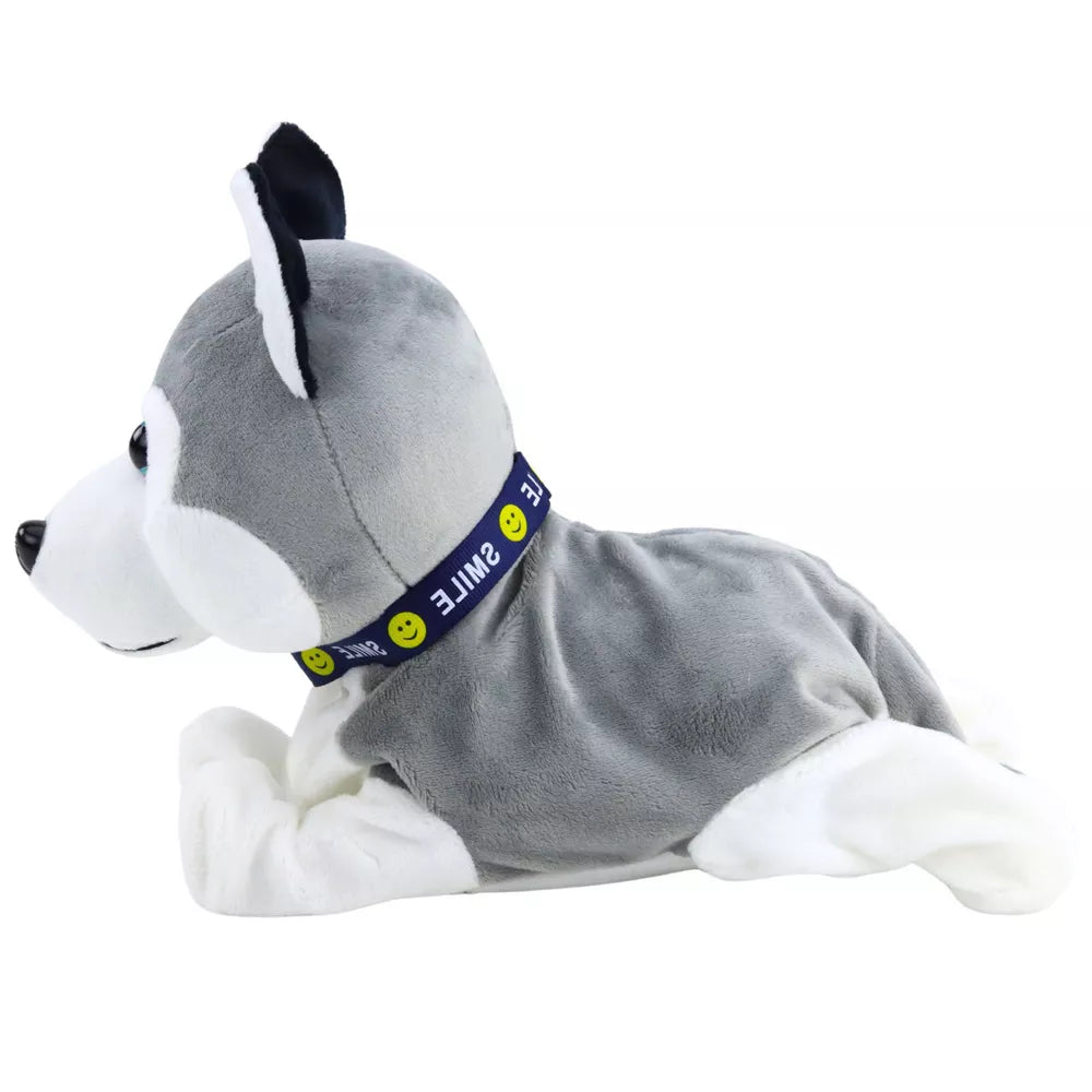 Interaktyvus pliušinis Haskis šunelis, varomas baterijomis, juda ir leidžia garsus