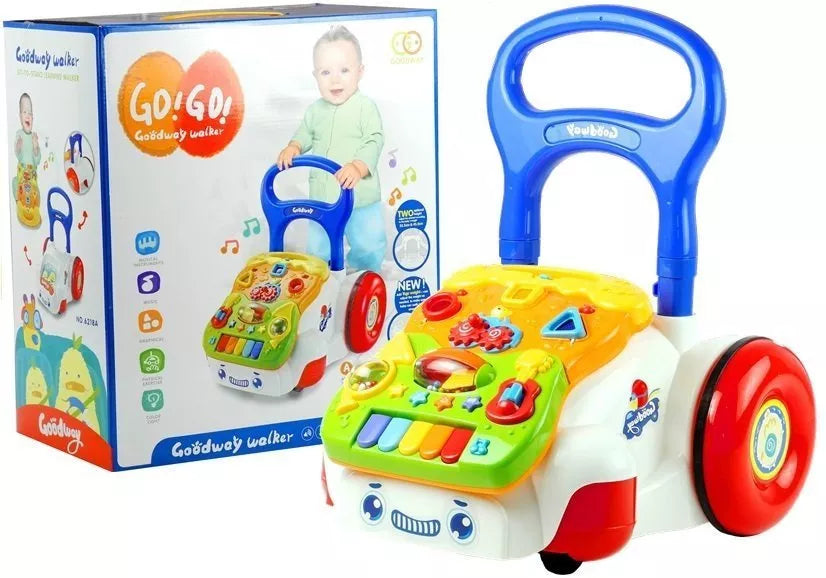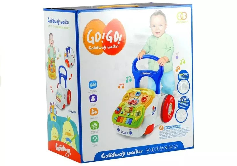 Stūmikas, kurį rekomenduojame visiems vaikams, yra ne tik pagalbininkas mokantis vaikščioti, bet ir žaislas. Vaikštynė skirta patiems mažiausiems vaikams, garantuojanti saugią konstrukciją ir pagaminta iš aukštos kokybės medžiagų. Įrangos apačioje yra stabdys, kurį galite įjungti, jei norite, kad vaikas žaistų vietoje. Skydelis vaikštynės priekyje yra nuimamas, todėl galite žaisti nenaudodami likusios įrangos. Su mūsų vaikštyne pasirūpinsite savo vaiko vystymusi nuo mažens!