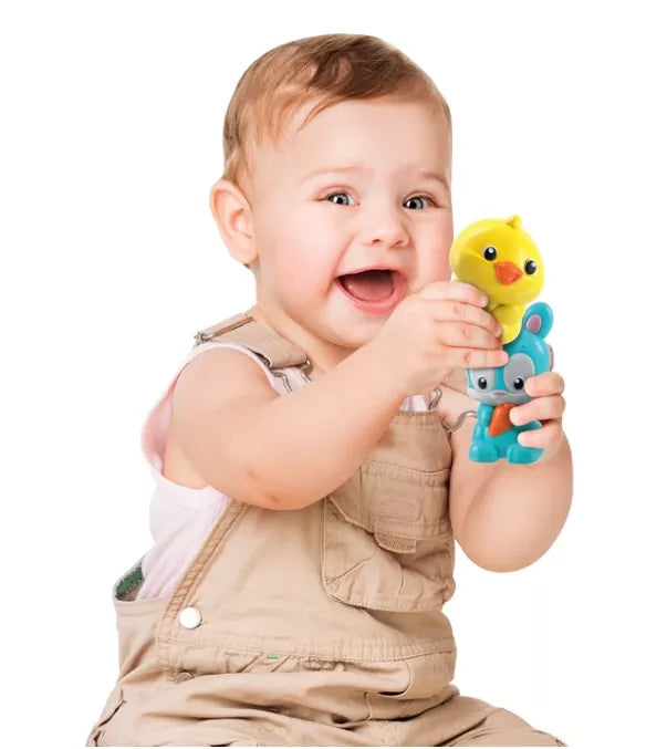 Traukinukas važiuoja smagiu takeliu, žaidimų rinkinys sukurtas ūkio pasaulyje. Palieskite kaminą ir traukinukas išsiruošia į fantastišką nuotykį su savo draugais: šunimi, karve, zuikučiu ir ančiuku. Kai pravažiuoja traukinukas, ūkis atgyja: pakyla krano rankos, pradeda suktis malūnas, o gaidys ir ančiukas skleidžia jiems būdingus garsus. Kai geltoni vartai uždaryti, ančiukas pradeda „plaukti“ tvenkinyje, o karuselė pradeda suktis. Tai tikrai smagu. Lavina rankų įgūdžius ir akių-rankų koordinaciją bei stimuliuoja vaizduotę.