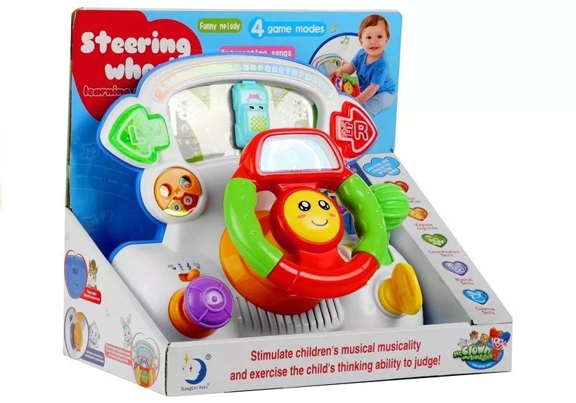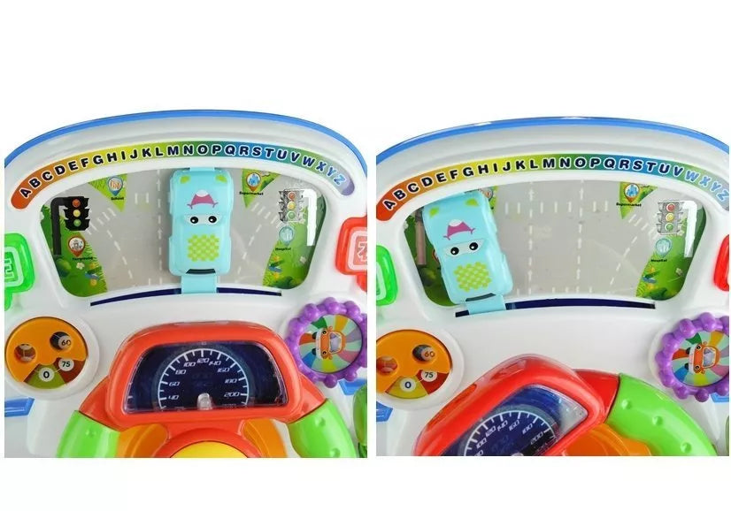 Visi kūdikiai mėgsta žaislus, kurie yra labai spalvingi ir sudaryti iš daugybės elementų su skirtingomis formomis. Smagiau, kai palietus pasirinktą elementą įsižiebia spalvotos švieselės ir pasigirsta linksmi garsai. Visi šie reikalavimai įvykdyti pristatomame vaire, esančiame ant prietaisų skydelio. Vaikiškas dizainas, primenantis tikrovišką vairą, papuoštas spalvingais priedais, kurie tikrai sudomins ir patrauks kiekvieno mažylio dėmesį.