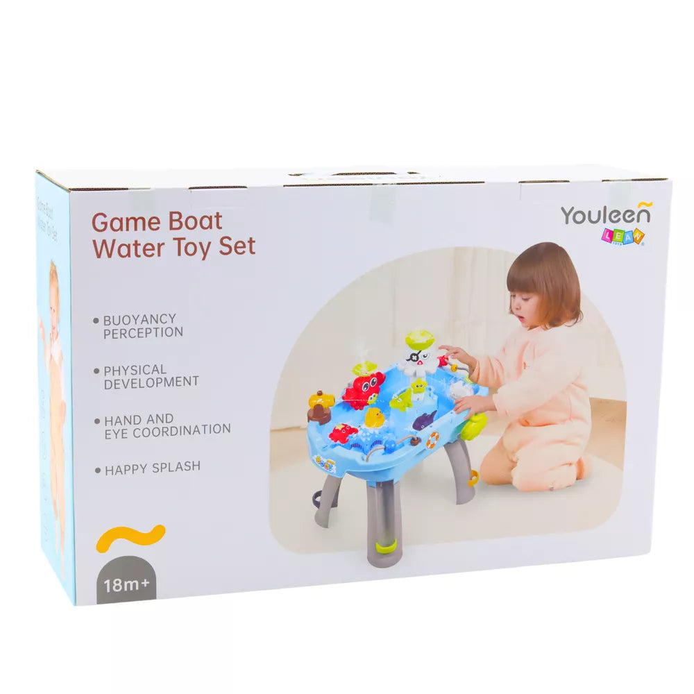Interaktyvus edukacinis vandens stalas yra daugiafunkcis žaislas, apjungiantis žaidimą su vandeniu, muziką ir interaktyvius elementus, suteikiantis vaikui daug džiaugsmo ir kartu palaikantis jo sensorinį bei motorinį vystymąsi. Dėl įvairių atrakcionų, tokių kaip besisukantys vandens sraigtai, fontanai, plaukiojantys gyvūnai, kuriuos galima žvejoti, ir garso efektai, mažylis gali atrasti ir tyrinėti pasaulį unikaliu, įtraukiančiu būdu.