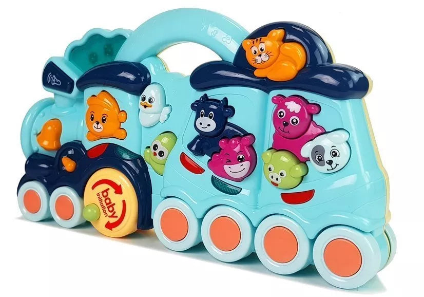 Pristatome interaktyvų lokomotyvą, kuris yra puikus žaislas vaikams nuo vienerių metų. Paspaudus bet kurį lokomotyvo mygtuką, pasigirsta skirtingas gyvūno garsas. Žaislas pagamintas iš dviejų mėlynos spalvos atspalvių. Ant lokomotyvo pavaizduoti gyvūnai: kačiukas, karvė, avis, šuo, kiaulė, arklys ir paukščiai. Didelis lokomotyvo privalumas – judantys ratai. Be to, lokomotyvas turi du garsumo lygius ir apšvietimo efektus.