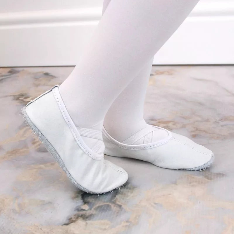 Jr. Nazo odiniai baleto šokių bateliai su elastiniais dirželiais, balti