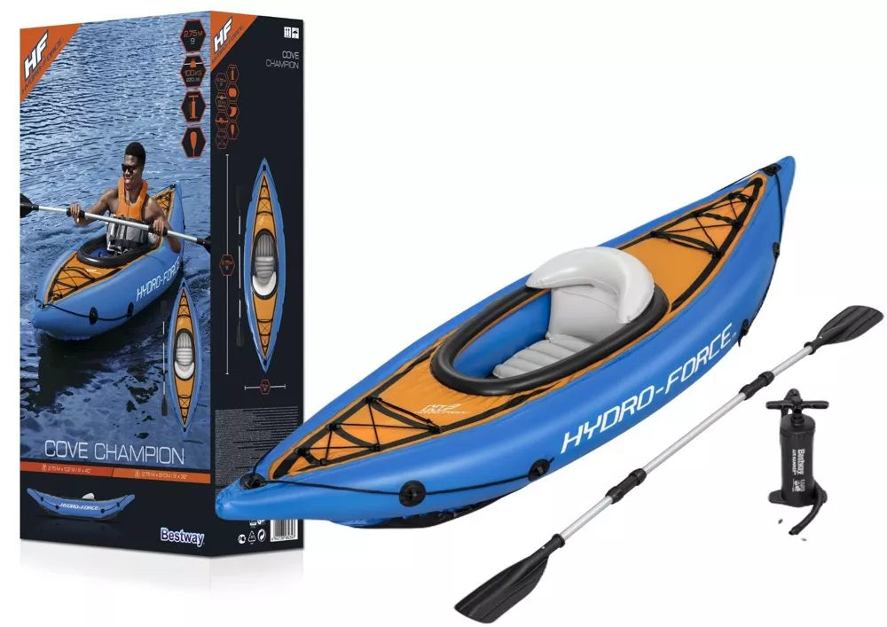 Išvyka prie vandens yra idealus būdas praleisti laisvalaikį. Norėdami paįvairinti šį nerūpestingą laiką, pasirūpinkite papildomais baseino priedais. Kajakas taip pat puikiai tiks rekreacinei kelionei ežere ar baseine. Pagamintas iš patvaraus, pažeidimams atsparaus vinilo, patogaus dydžio kabinoje yra reguliuojama sėdynė su atlošu papildomai atramai. Šiame kajake taip pat yra daug vietos užkandžiams, papildomai įrangai ar kitiems vandens poreikiams. Be to, jis lengvai plūduriuoja vandenyje dėl dviejų nuimamų pelekų apačioje, kuriuos galima nuimti, kad būtų lengva ir kompaktiška laikyti. Priklausomai nuo vandens sąlygų, galite reguliuoti peleko dydį pagal savo poreikius. Šiame rinkinyje taip pat yra Air Hammer ™ rankinis siurblys, skirtas paprastam, greitam pripūtimui, irklas ir remonto lopas.