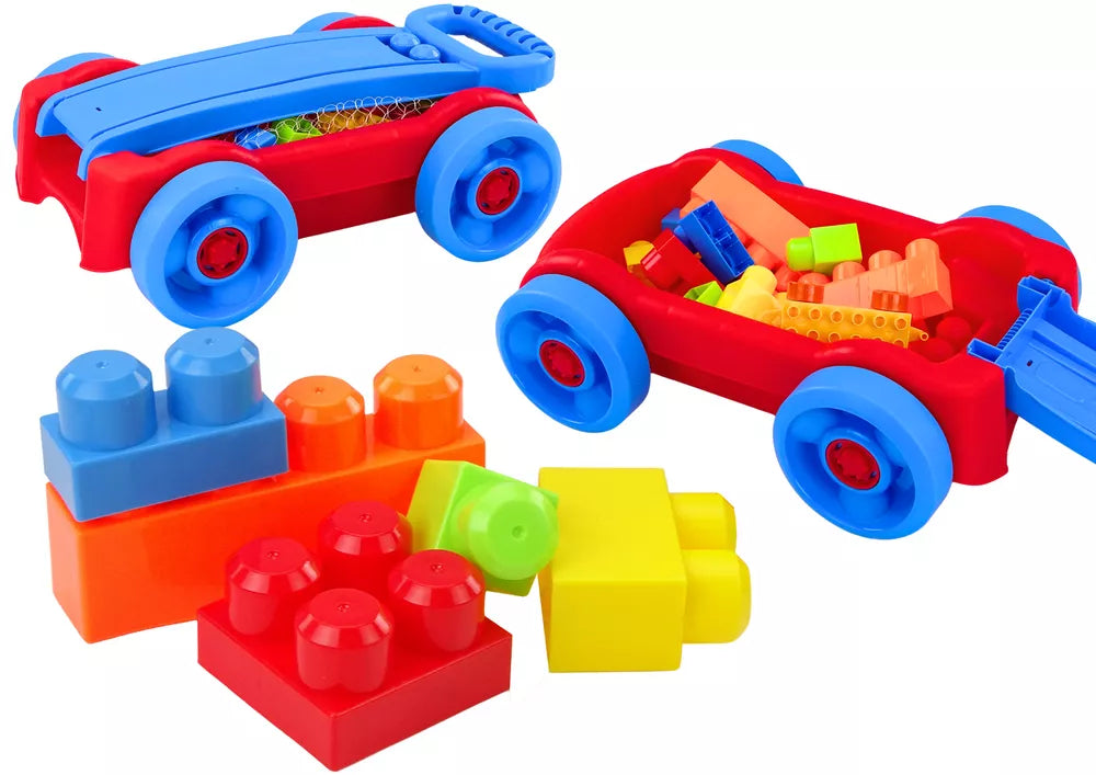Vežimėlis su kaladėlėmis – puiki priemonė pramogoms ir organizavimui patiems mažiausiems tyrinėtojams. Tvirtas, plastikinis vežimėlis ant keturių ratų, mėlynos ir raudonos spalvų derinio, yra lengvas ir lengvai stumiamas net ir mažiausiems. Jo dėka vaikai gali lengvai transportuoti savo mėgstamas kaladėles, kurdami unikalias konstrukcijas, kur tik nori.