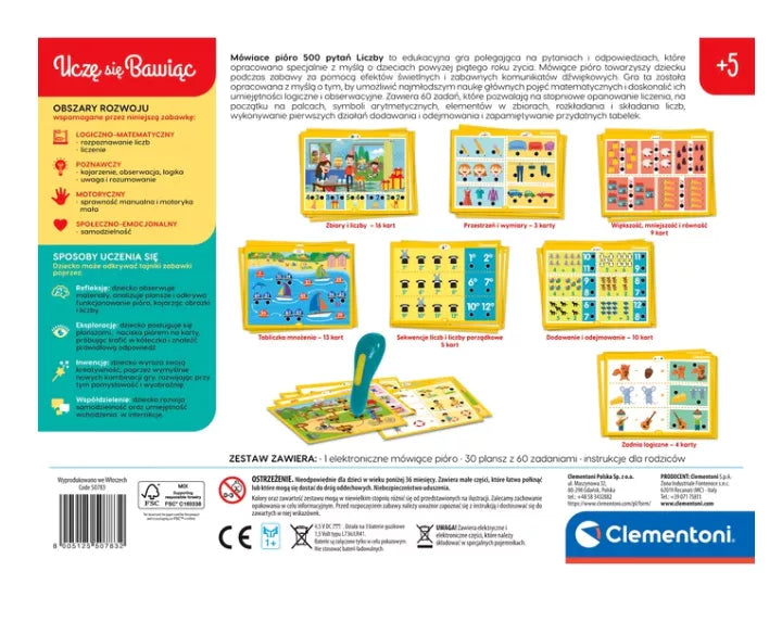 Kalbantis Pen 500 Klausimų: Skaičių Žaidimas ir Mokymasis Lenkų Kalba CLEMENTONI 50783