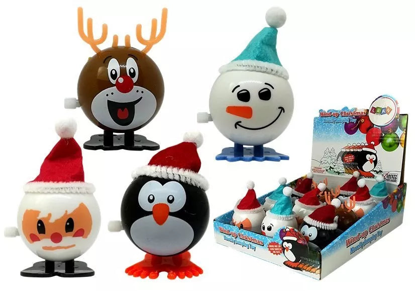 Kalėdinių žaislų rinkinys su prisukamu mechanizmu, pingvinas, 12 vienetų, elnias, sniego senis, Kalėdų Senelis