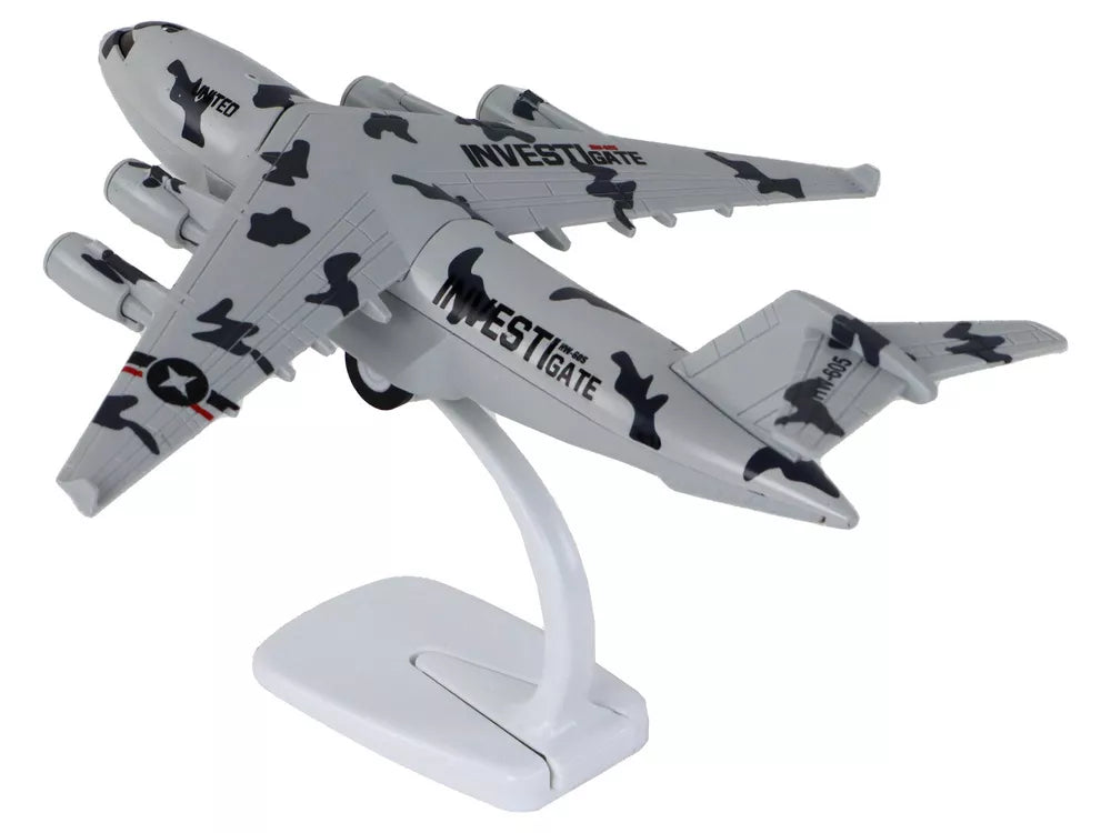 Šis karinis lėktuvo modelis yra įspūdingos išvaizdos. Jis nudažytas charakteringu kamufliažiniu raštu, kuris suteikia jam karinio pobūdžio ir leidžia atrodyti labai autentiškai. Spalvos ir raštas atspindi karinį stilių, kuris žaislui suteikia tikroviškumo.