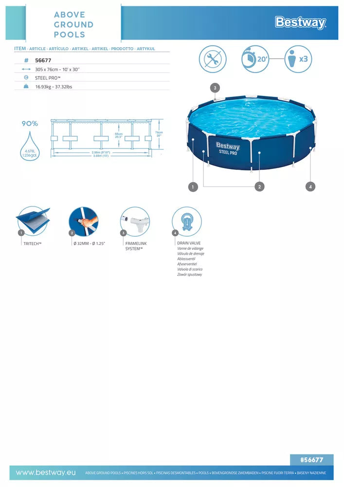 Bestway 56677 305 x 76 cm karkasinis sodo baseinasJei jums reikia baseino, kuriame galėtumėte atsivėsinti karštomis dienomis ir mėgautis vasara... Skaityti daugiau