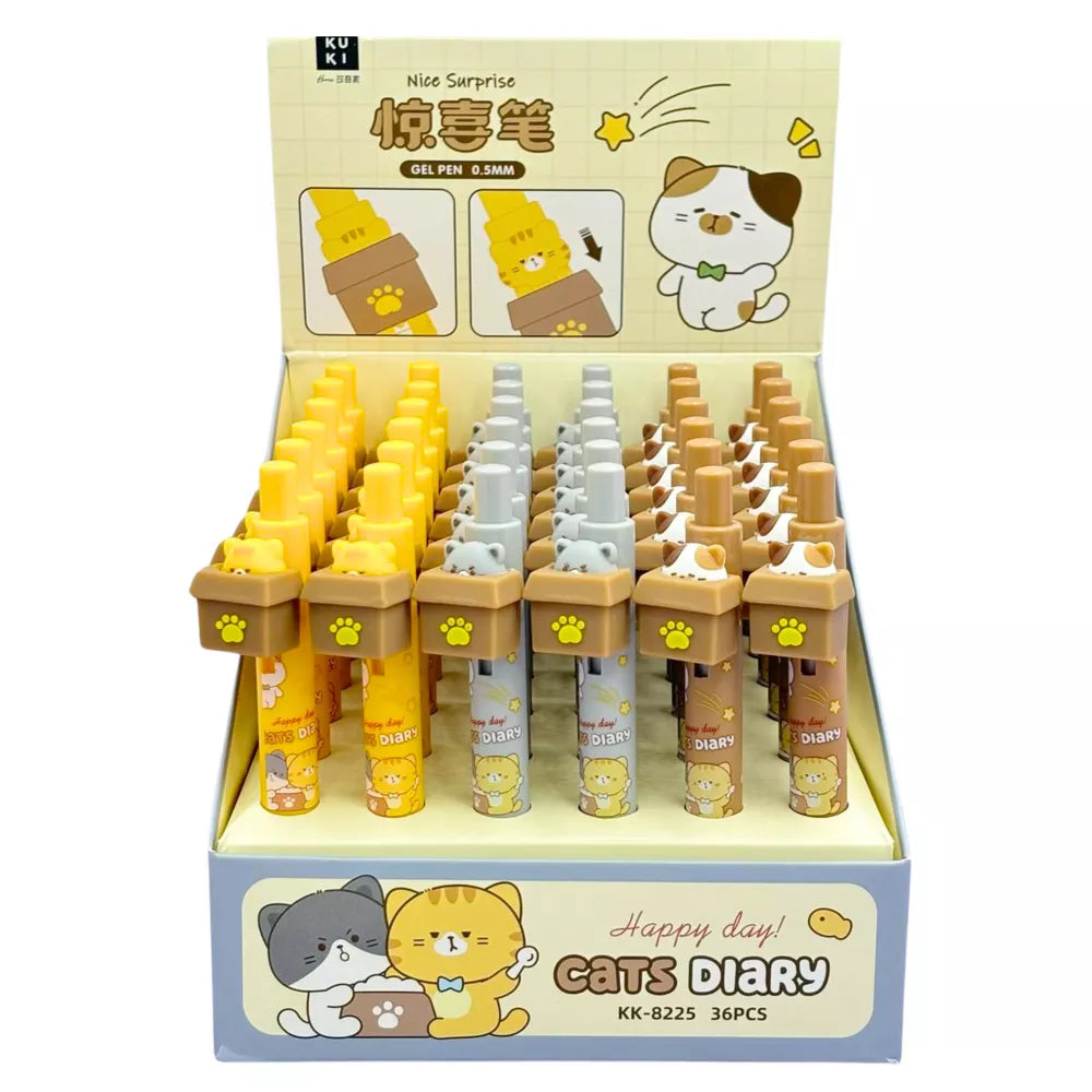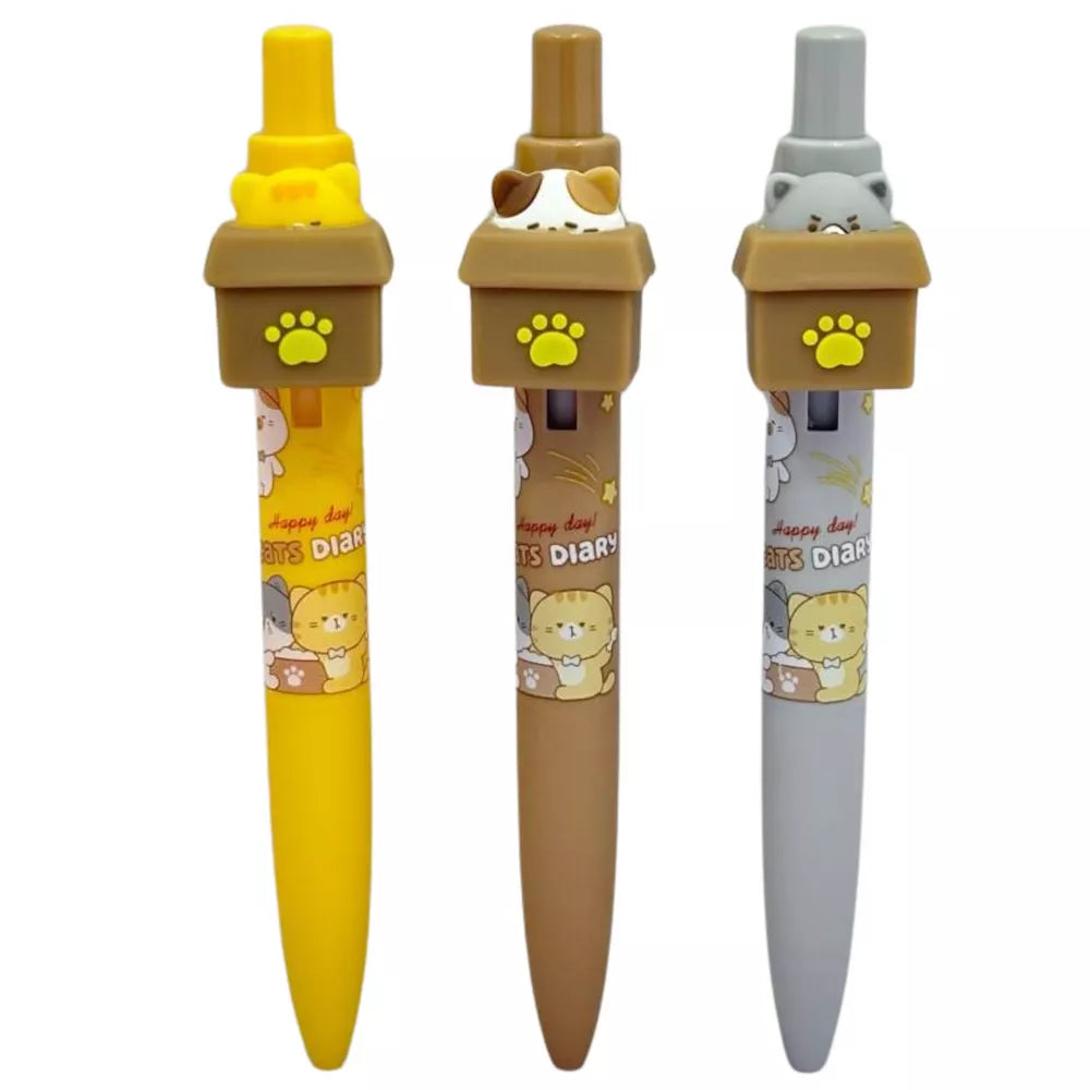 Katės formos gelinis rašiklis dėžutėje, mėlynas rašalas, 0,5 mm