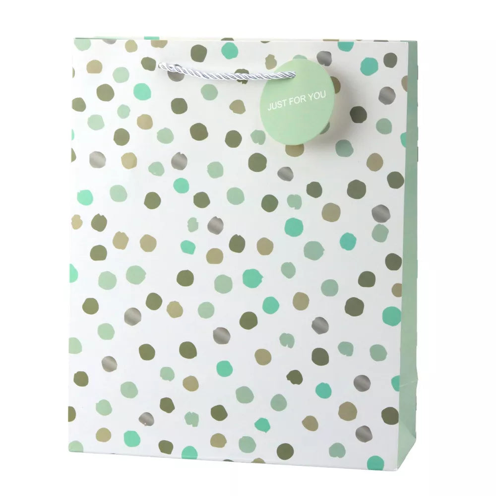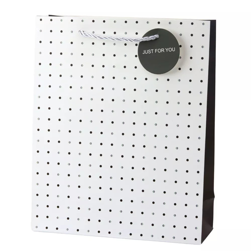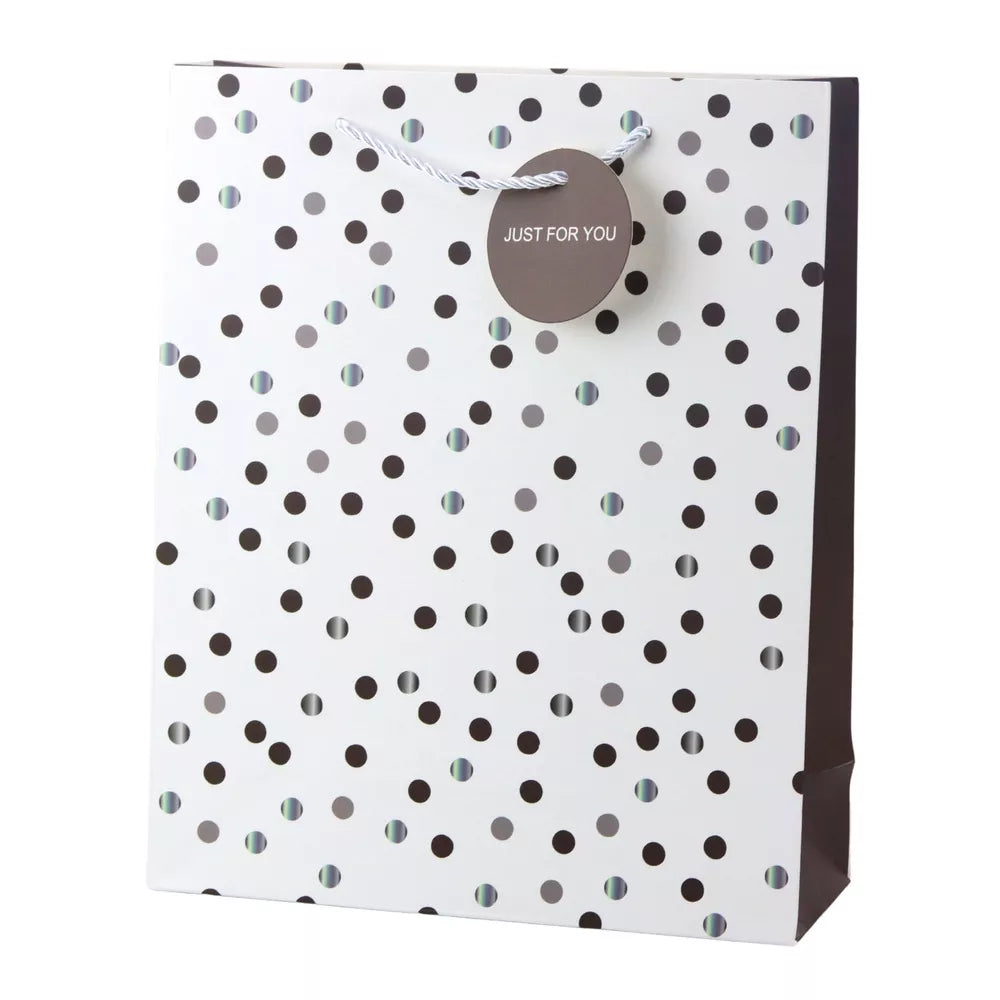Klasikinis dovanų maišelis su taškeliais ir pakabuku „Tik tau“, 32 x 26 x 10 cm