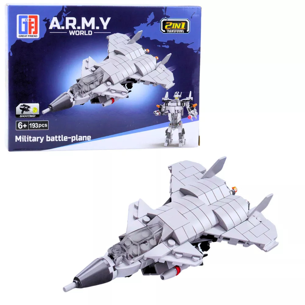 ARMIJOS 2-IN-1 STATYBINIAI BLOKELIAI KARINĖS TRANSPORTASTO IR ROBOTAI