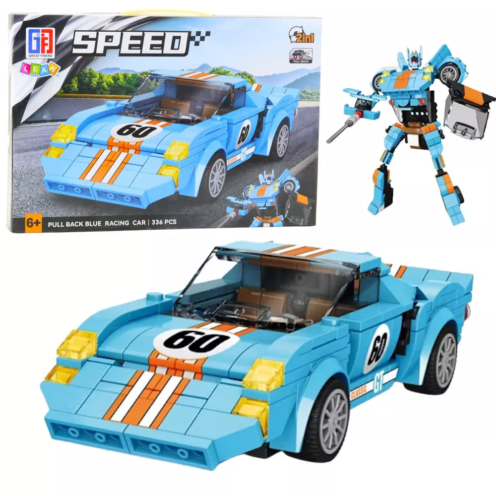 Konstruktorius Automobilis Robotas 2in1 Oranžinis-Mėlynas Važiuoja 336 vnt.