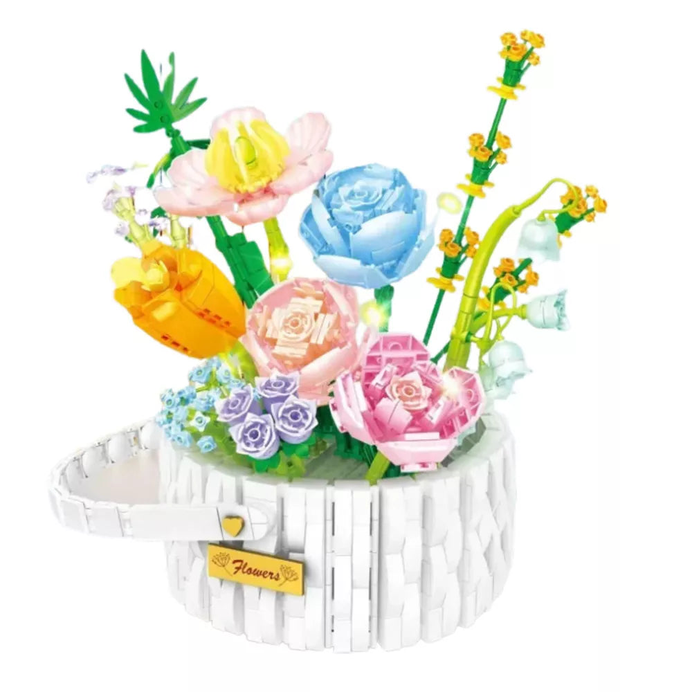 Šis konstruktorius gėlių krepšelio formos yra puikus kūrybinio žaidimo ir akį traukiančios dekoracijos derinys. Šis 1376 dalių modelis leidžia jums sukurti turtingą puokštę stilizuotame baltame krepšelyje. Dizainas stebina savo gausiomis detalėmis ir plačia spalvų palete, suteikiančia jam unikalų žavesį.